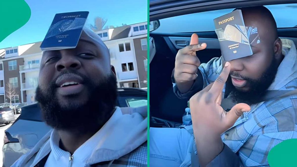 A young Nigerian man has gone viral on social media as he taped his passport to his head to avoid arrest by ICE The young